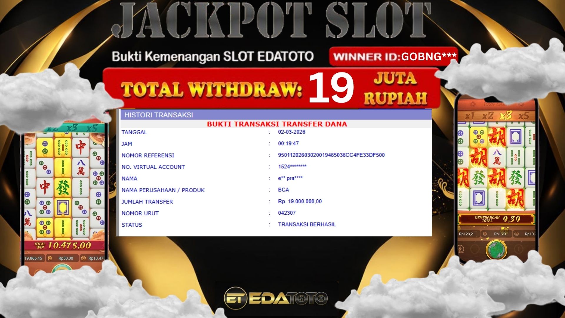 Selamat Kepada Pemilik user ID : GOBNG*** Hari/Tanggal : SENIN / 02 MARET 2026 Jackpot : Rp, 23,000,000 JT Withdraw . . .